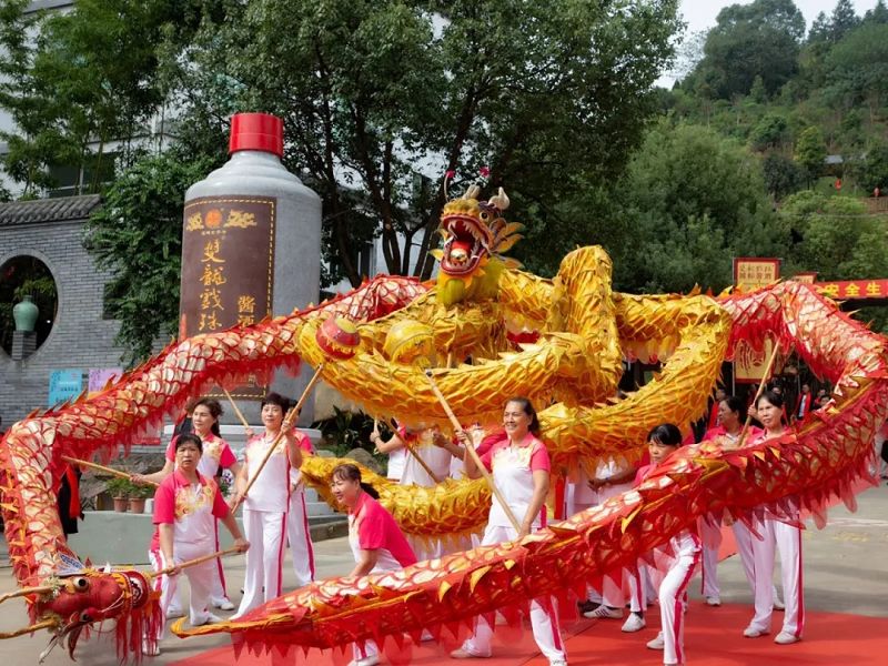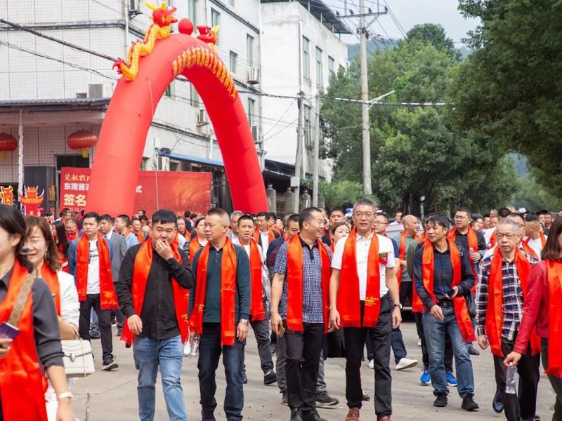 在喜慶的鞭炮鑼鼓聲和精彩的舞龍表演中,雙龍戲珠東南醬酒文化館正式揭牌!