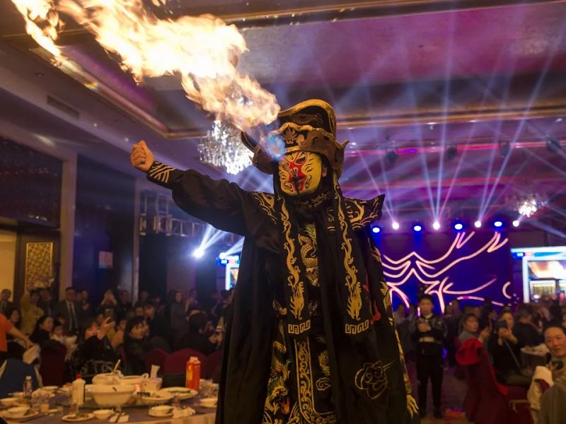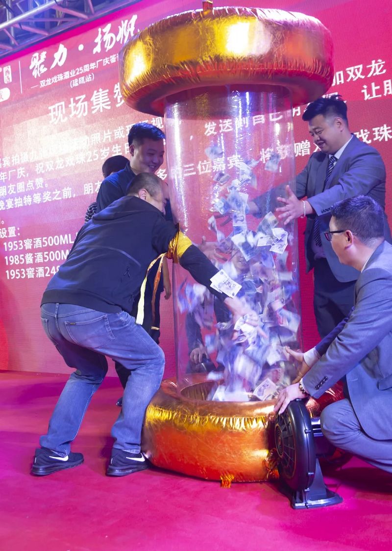 現(xiàn)場還上演了精彩的文藝表演和傳統(tǒng)藝術(shù)川劇變臉?;有∮螒颉蹲ガF(xiàn)金》將現(xiàn)場氣氛推向了最高潮。在每輪節(jié)目過后,現(xiàn)場都抽取了幸運觀眾并送出重磅大獎,10克雙龍戲珠金條、5L雙龍戲珠1953洞藏窖酒、華為平板電腦,更有49999元現(xiàn)金大獎!
