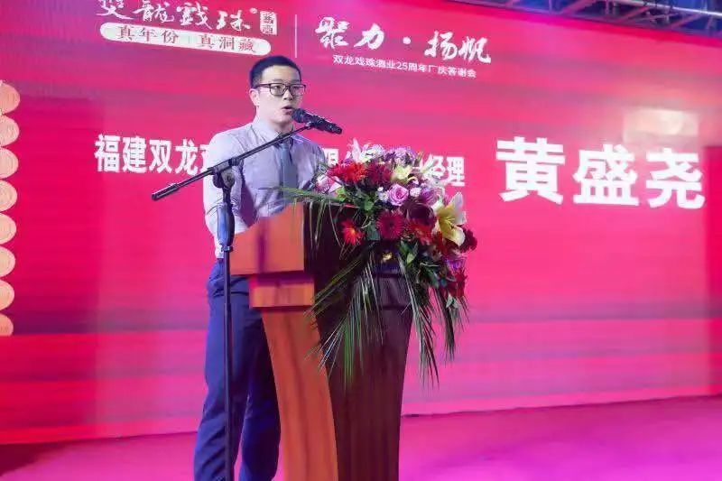 雙龍戲珠酒業(yè)總經(jīng)理黃盛堯代表雙龍戲珠酒業(yè)全體員工,向出席答謝宴的各位來賓、經(jīng)銷商表示熱烈的歡迎,向一路相伴和支持的朋友們表示由衷的感謝。