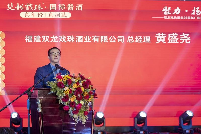 雙龍戲珠酒業(yè)總經(jīng)理黃盛堯代表雙龍戲珠酒業(yè)全體員工,向出席答謝宴的各位來賓、經(jīng)銷商表示熱烈的歡迎,向一路相伴和支持的朋友們表示由衷的感謝。