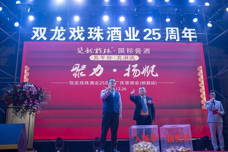 12月26日,雙龍戲珠酒業(yè)25周年廠慶答謝宴(順昌站)在順昌縣大圣假日酒店隆重舉行。雙龍戲珠酒業(yè)總經(jīng)理黃盛堯、順昌縣欣榮貿(mào)易有限公司總經(jīng)理繆長榮出席活動并致辭。