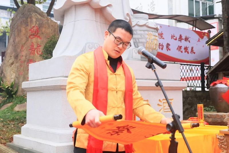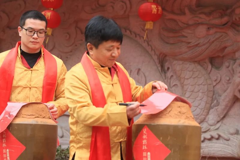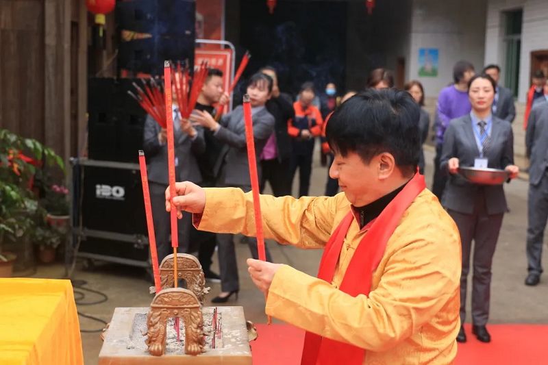 上午9:09,祭祀儀式正式開始,雙龍戲珠酒業(yè)總經(jīng)理黃盛堯誦讀祭文,隨后,雙龍戲珠酒業(yè)董事長黃德鋒帶領公司高管凈手、上香,祈愿風調雨順、五谷豐登。
