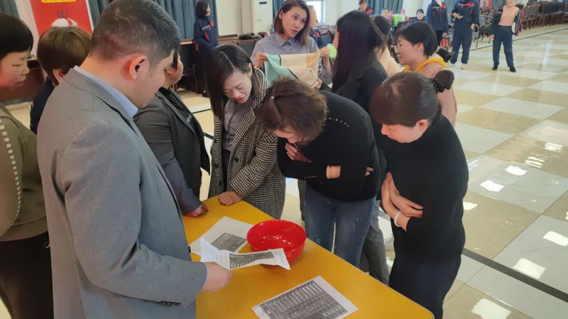 下午15時,在雙龍戲珠酒業(yè)10樓多功能廳,乒乓球團隊接力、吹乒乓球、搶凳子游戲和全員博餅活動接連上演。女職工之間配合默契,現(xiàn)場充滿了大家的歡聲笑語。