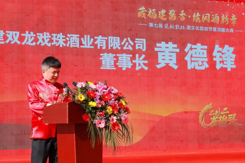隨著領(lǐng)導(dǎo)嘉賓完成簽到、入座,“第七屆雙龍戲珠酒文化旅游節(jié)暨洞藏大典”正式開幕。福建雙龍戲珠酒業(yè)有限公司董事長(zhǎng)黃德鋒首先致開幕辭,黃董事長(zhǎng)表示,我們今后發(fā)展的道路會(huì)遇到這樣、那樣的困難。但是我們用至誠(chéng)真心,釀最好美酒的初心不變,我們與參與者共享發(fā)展成果的初心不變,我們公司發(fā)展對(duì)社會(huì)有利的初心不變。