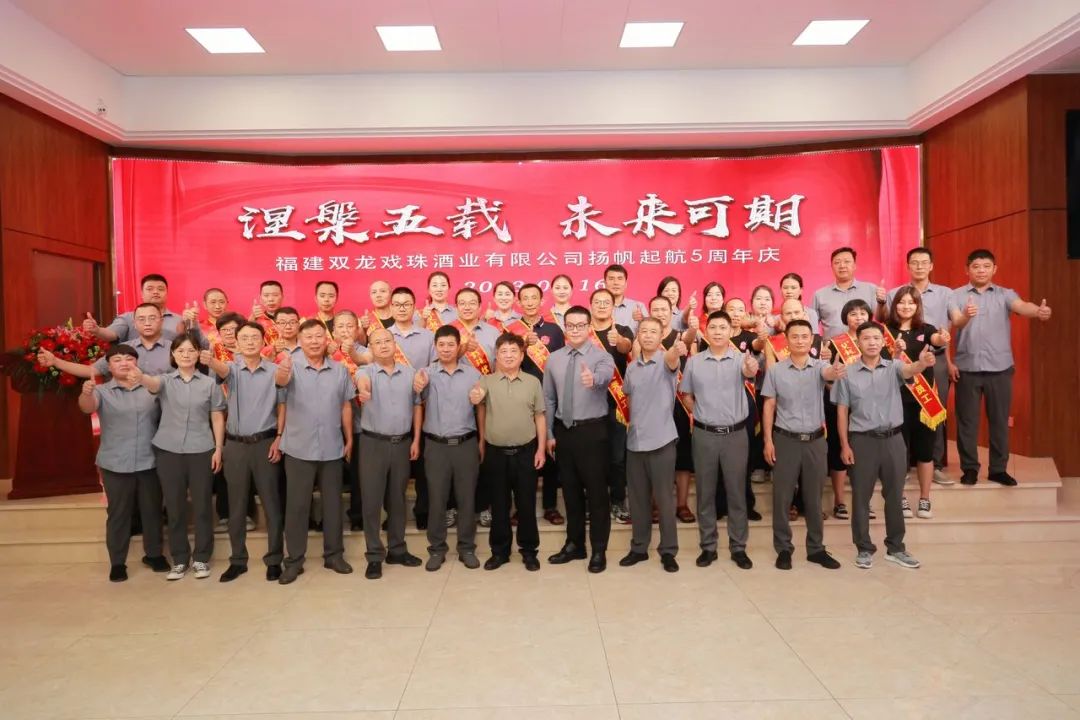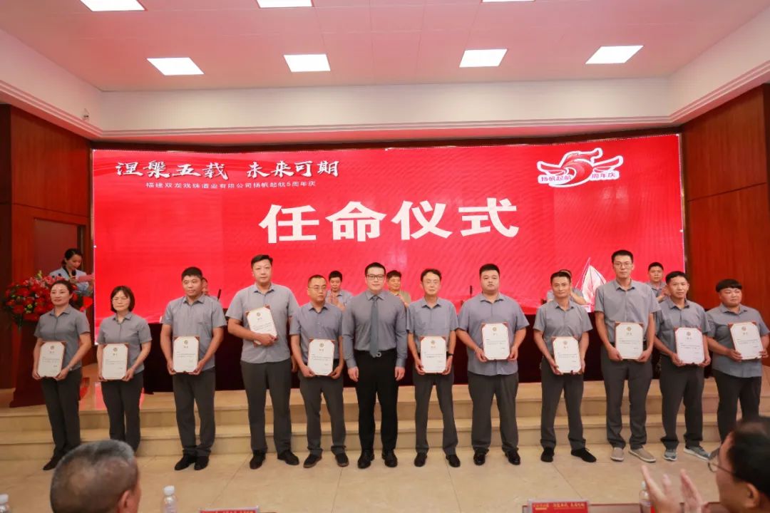 五載風(fēng)雨,非同凡響。2023年6月16日,雙龍戲珠酒業(yè)揚(yáng)帆起航五周年慶活動(dòng)圓滿舉辦?;仡櫣窘迥陙淼陌l(fā)展歷程及成就,同時(shí)為公司中、高層頒發(fā)任命書和優(yōu)秀員工的表彰與頒獎(jiǎng),公司全體員工歡聚一堂,載歌載舞,舉杯共飲,彼此獻(xiàn)上最誠(chéng)摯的祝福,一起歡快度過了難忘的揚(yáng)帆起航五周年慶典。