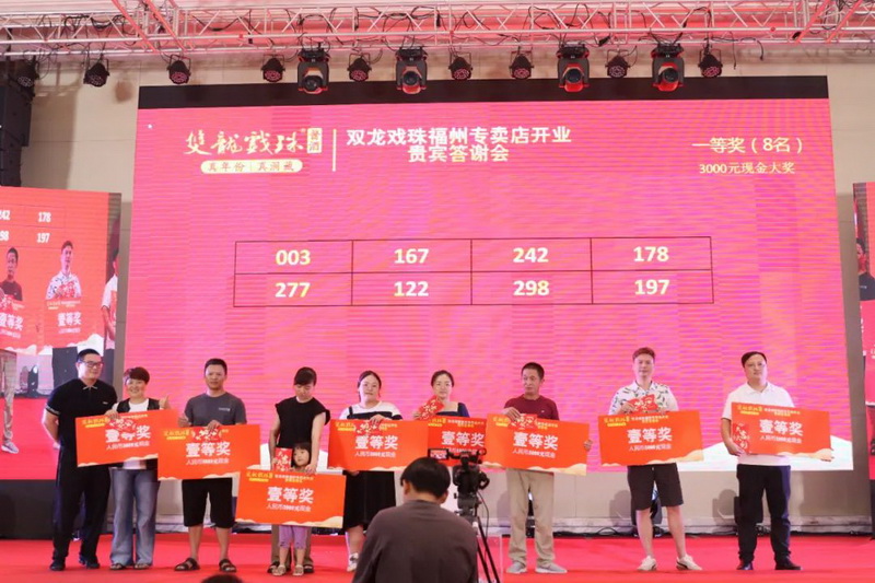 伴隨著雙龍戲珠福州六一路專賣店的盛大開業(yè),答謝晚宴上,福建雙龍戲珠酒業(yè)有限公司總經(jīng)理黃盛堯、福州天福榮貿(mào)易有限公司總經(jīng)理陳建榮進(jìn)行致辭,對(duì)現(xiàn)場(chǎng)數(shù)百名來賓的到來表達(dá)了衷心的感謝和熱烈的歡迎。