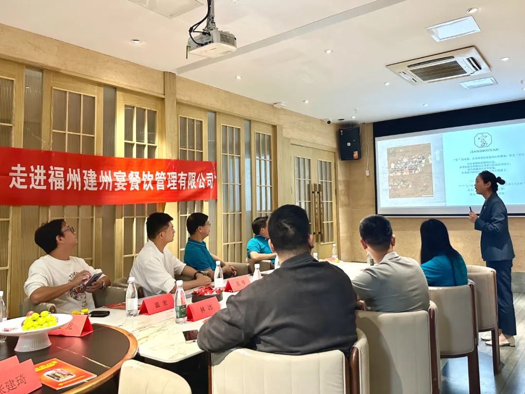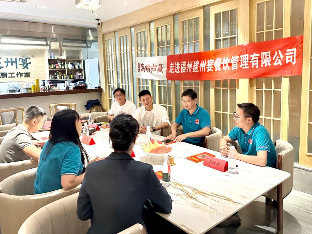福州建州宴餐飲管理有限公司創(chuàng)始人吳烽對雙龍戲珠酒業(yè)一行的到來表示歡迎,他表示,與雙龍戲珠酒業(yè)的戰(zhàn)略合作充滿了期待,將秉持資源共享、優(yōu)勢互補(bǔ)的原則,通過各自在行業(yè)中的優(yōu)勢,打通高端圈層,進(jìn)行更深層次的務(wù)實(shí)合作,在謀求攜手共贏的道路上行穩(wěn)致遠(yuǎn)。隨后帶領(lǐng)大家一起參觀了解建州宴企業(yè),座談會上,向大家介紹了建州宴企業(yè)的發(fā)展歷程、業(yè)務(wù)范圍、企業(yè)規(guī)模、企業(yè)文化等情況。
