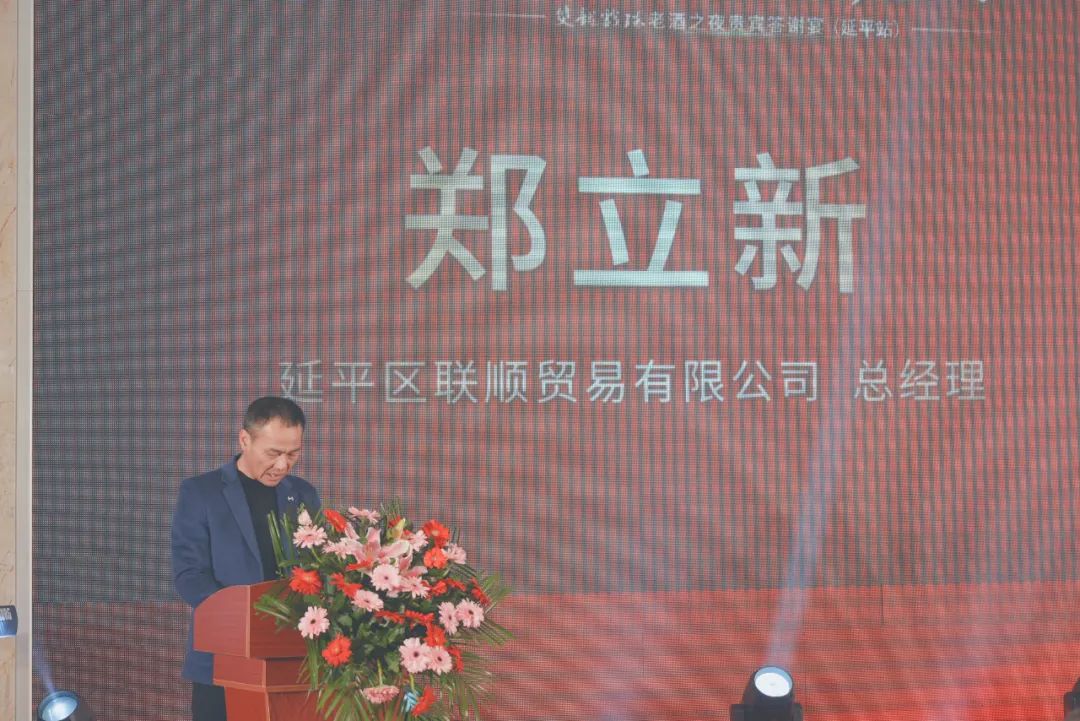 延平區(qū)聯順貿易有限公司總經理鄭立新在致辭中感謝大家的出席,他表示延平市場的發(fā)展離不開大家的支持,我們舉辦答謝宴,在品鑒高品質老酒之際,也想借此機會加強彼此之間的聯系,讓各位朋友、伙伴體驗醬香之美,共贏美好未來!
