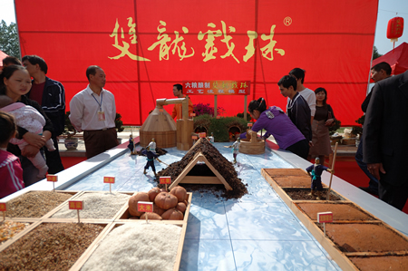 2009年10月18日,為展現(xiàn)古城建甌風采,傳播酒文化;公司應(yīng)邀參加中國筍竹城.。建甌閩源文化藝術(shù)節(jié)。參展期間由公司自行研制的六糧釀造“雙龍戲珠”酒深受廣大消費者好評,整個展區(qū)分品酒區(qū)、六糧釀造工藝區(qū)、產(chǎn)品展示區(qū)及酒文化傳播區(qū),特別是六糧釀造工藝流程區(qū)的模型區(qū),栩栩如生的小泥人,傳統(tǒng)的釀造工藝流程,讓廣大群眾對中國璀璨的酒文化有了直觀的認識。通過此次閩源文化藝術(shù)節(jié),對傳播雙龍戲珠酒文化、樹福建白酒高端品牌,奠定了堅實的基礎(chǔ)。