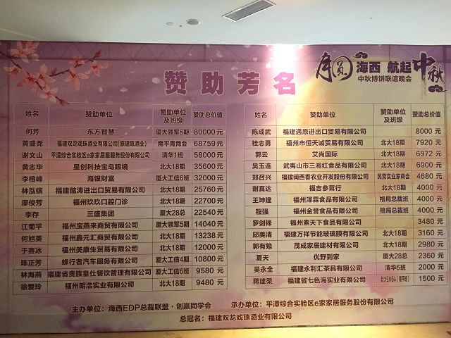 2019年9月7日福建雙龍戲珠酒業(yè)有限公司傾情助力海西EDP總裁聯(lián)盟-創(chuàng)贏同學(xué)會(huì)-月圓海西 航起中秋博餅聯(lián)誼晚會(huì)。
