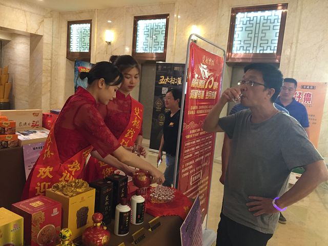 雙龍戲珠酒業(yè)現(xiàn)場(chǎng)產(chǎn)品展示、來(lái)賓現(xiàn)場(chǎng)品鑒美酒